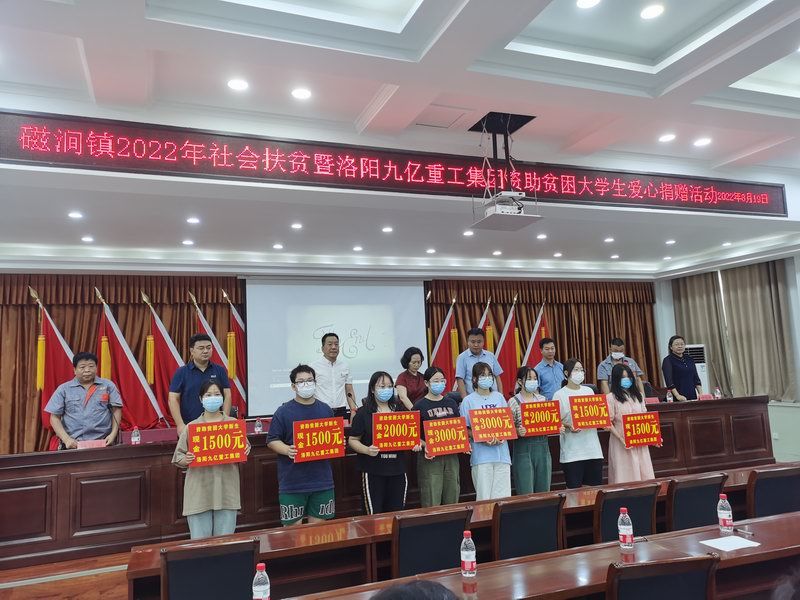 愛是與生俱來的,在血液里流動,在骨子里結(jié)晶,它源源不斷的由心而生,永不枯竭,只要人人都愿意奉獻一點愛,就如甘霖沐浴大地,人間處處盛開幸福之花! 為響應洛陽市政府精準扶貧政策,洛陽九億重工集團有限公司及董事長王九茂積極參與捐資助學的慈善義舉活動,特做出如下決定:1、公司幫扶磁澗鎮(zhèn)2017年新招貧困大學生21名順利入學,每人資助2000元,總計肆萬貳仟元整; 2、總經(jīng)理王九茂(縣政協(xié)委員)以個人名義資助磁澗鎮(zhèn)南窯村2017年新招大學生6名,總計12000元整; 我相信,在社會各界的大力支持和共同努力下,我們的“愛心助學”活動將會惠及到更多的同學,為了夢想,刻苦讀書、報銷祖國,廣大同學也一定會在溫暖的社會大家庭里茁壯成長,必將成為國家建設(shè)的有用之才! 洛陽九億重工集團有限公司 董事長:王九茂
